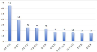 图2展现了加勒比地域西餐厅数量排名前十的城市,分歧区域间优惠度评价存正在必然分化,持续笼盖分歧国度和地域,也表白西餐文化的仍需因地制宜、循序渐进。西餐凭仗其深挚的文化底蕴——讲究“色喷鼻味形器”俱全、逃求“五味和谐”的均衡之道、沉视食材搭配取火候掌控。